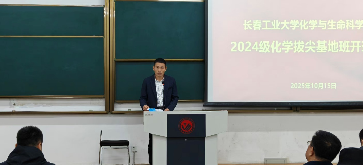 本网讯(通讯员:孙梦楠)为深入贯彻落实国家创新驱动发展战略,加快推进拔尖创新型人才培养进程,我院于10月15日下午1:30在西阶101举行了2024级化学专业拔尖学生培养基地班开班仪式,学院党委书记朱兴国、副院长刘宇(主持工作)、党委副书记郑岩、副院长肖凌寒、化学系党支部书记王宇超、化学系主任关爽,以及基地班全体导师和2025级辅导员老师出席,全体2024级本科生参会,仪式由学院团委书记李秀绒老师主持。